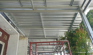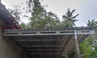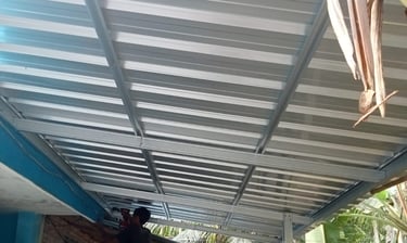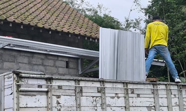 Pemasangan rangka dan Kanopi Galvalum Metal Polos dengan presisi dan detail, merupakan bagian dari komitmen kerja kami.