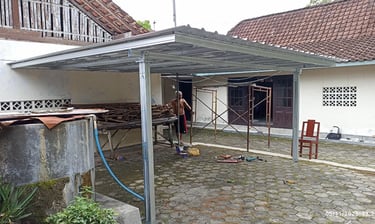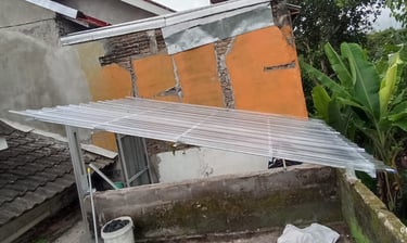 Pemasangan rangka dan Kanopi Galvalum Bening dengan presisi dan detail, merupakan bagian dari komitmen kerja kami.