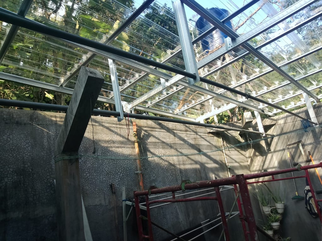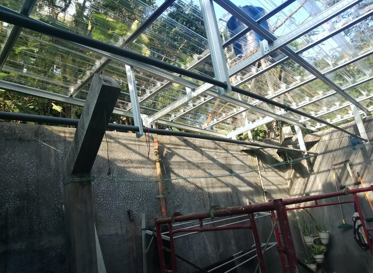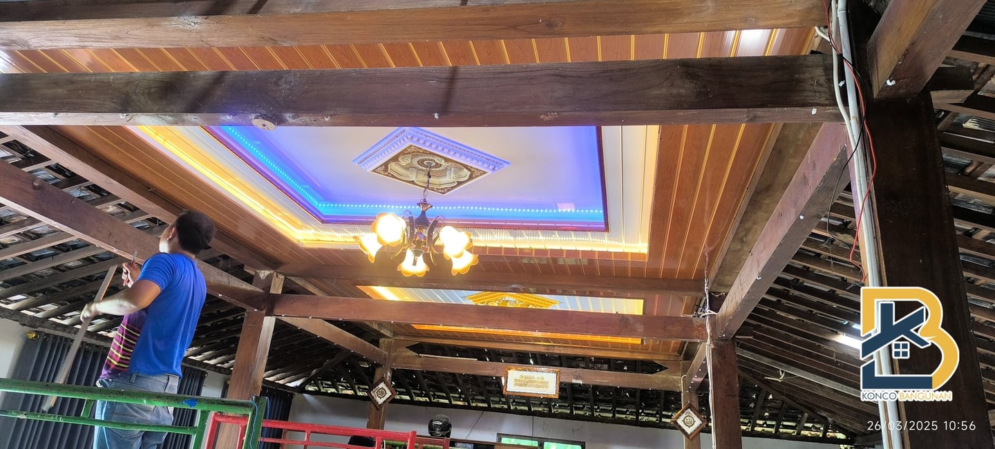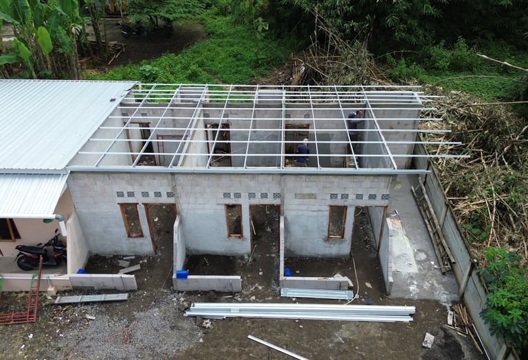 Pembangunan struktur baja ringan dan pemasangan plafon yang kokoh, efisien, dan tahan lama untuk rumah, gudang, atau bangunan.